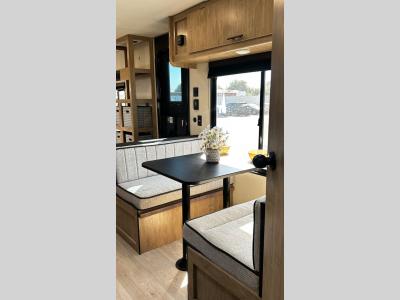 The double-size bunks in this model will allow you to camp with more friends and family! With the additional queen bed up front, plus the sofa and booth dinette, you can sleep eight! A full kitchen lets you make meals each day, and the full bath includes a tub/shower so you can clean up after hiking. This unit also includes USB ports to keep your electronics charged, and outside storage for your camp gear!