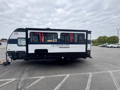 Camping trips in this spacious travel trailer are sure to bring memories! Once you arrive at the campground, you can unload the outside storage, put out the 12' awning, and enjoy the outdoor mini kitchen. Once inside, you can dine at the booth dinette, relax on the sofa, and freshen up in the full bath with a tub/shower. The front queen bed will provide a great night's rest, while your guests sleep on the living area furniture. This travel trailer also includes ample interior storage, including a spacious kitchen pantry, an overhead cabinet above the bed, plus additional storage beside the refrigerator!