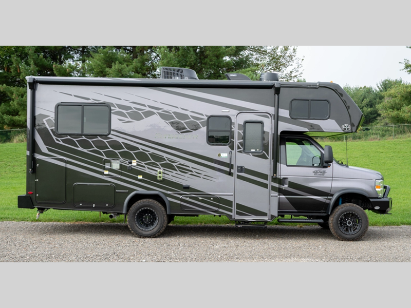Sleeps 6 Length 24 ft 6 in Ext Width 8 ft 5 in Ext Height 11 ft 6 in Hitch Weight 7500 lbs Fresh Water Capacity 44 gals Grey Water Capacity 39 gals Black Water Capacity 39 gals Fuel Type Gas Chassis Ford E450 4x4 Fuel Capacity 55 gals Wheelbase 158 in Number Of Bunks 1 Available Beds Queen Refrigerator Type 12V Refrigerator Size 10 cu ft Convection Cooking Yes Shower Size 24" x 32" Number of Awnings 1 Axle Weight Front 5000 lbs Axle Weight Rear 9600 lbs LP Tank Capacity 41 lbs. Awning Info 15' 6" Gross Combined Weight 22000 lbs Shower Type Standard Solar Wattage 200 watts Similar Floorplans