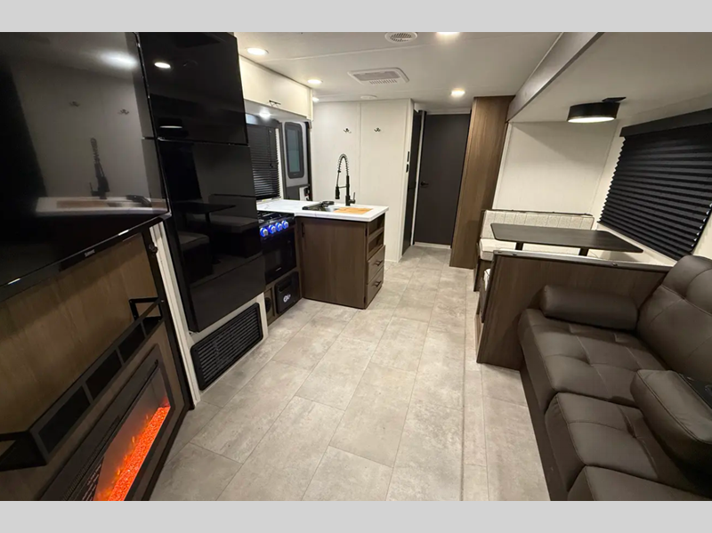 Sleeps 3 Slides 1 Length 23 ft 4 in Ext Width 8 ft Ext Height 10 ft 9 in Hitch Weight 585 lbs Dry Weight 5013 lbs Cargo Capacity 2572 lbs Fresh Water Capacity 42 gals Grey Water Capacity 34 gals Black Water Capacity 34 gals Furnace BTU 30000 btu Available Beds Camp King Refrigerator Type 12V Cooktop Burners 3 Number of Awnings 1 Water Heater Type Tankless AC BTU 15000 btu TV Info LR Smart TV Awning Info Power Awning w/LED Lights Axle Count 2 Shower Type Standard Solar Wattage 200 watts Similar Floorplans