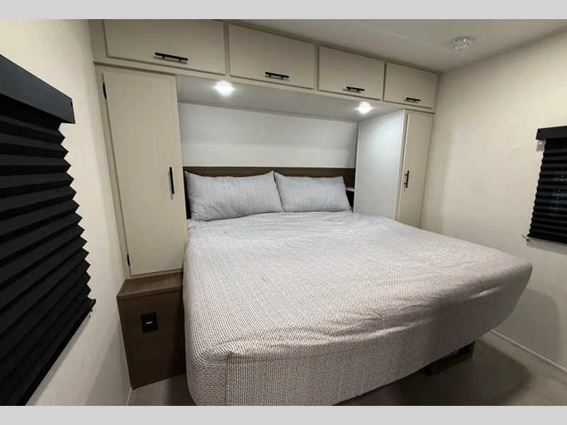 Each is built with Eternabond construction, which is a bonded aluminum structure for maximum strength and durability. The interior offers full bath and kitchen amenities, comfortable sleeping arrangements, and plenty of storage for all your belongings. You'll enjoy a power awning with LED lights on each model, along with a tankless water heater, exterior speakers, a 12V refrigerator, and many more convenient features!
